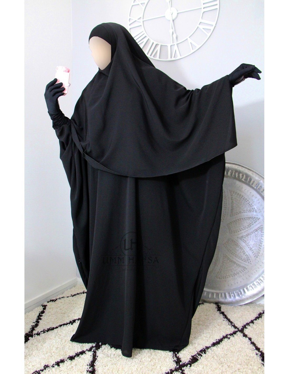 Abaya + Khimar Lycra Umm Hafsa Set - SCHWARZ