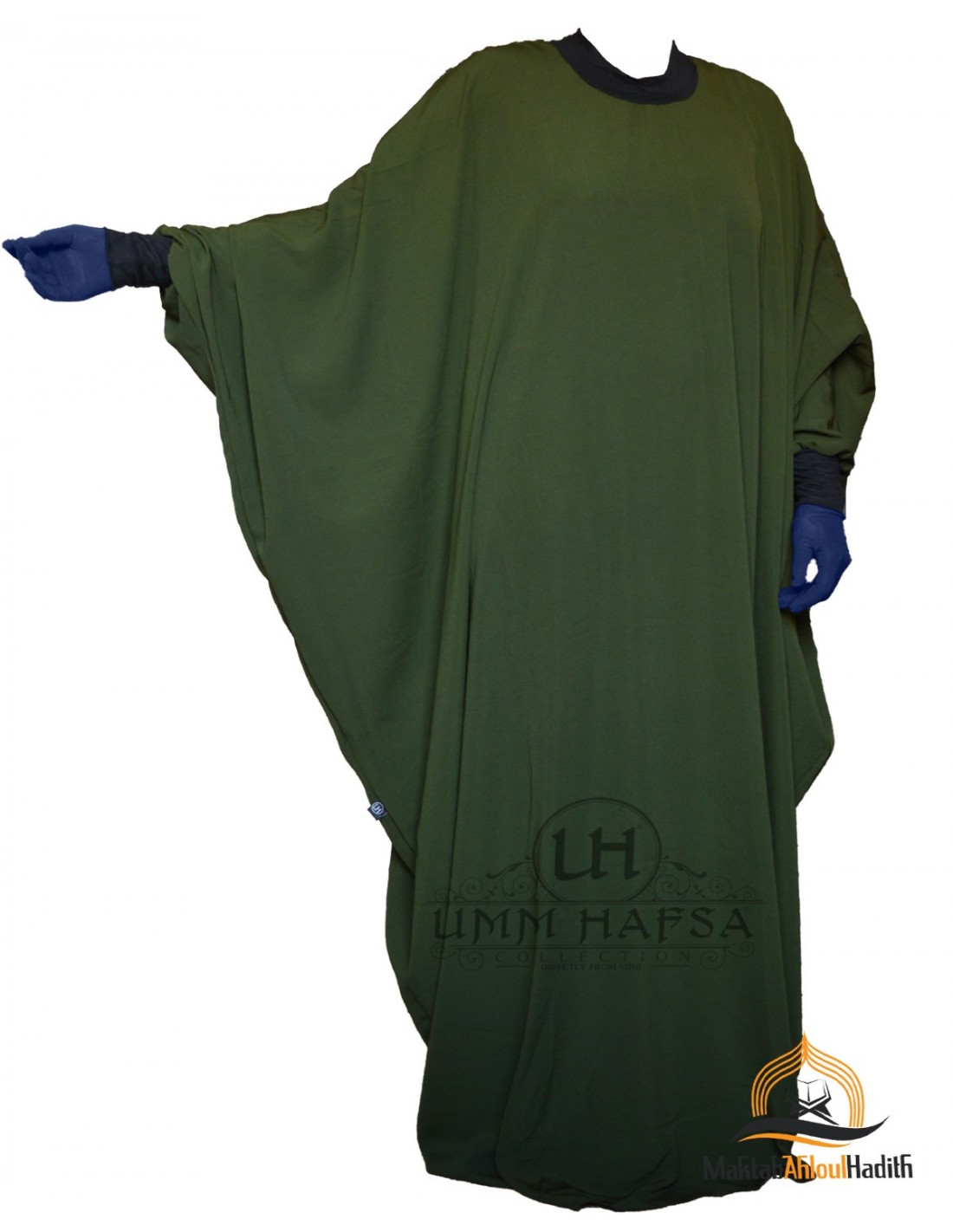 Dies ist die neue Lycra-Abaya von Umm Hafsa eine Neuheit, die die Schwestern begeistern wird eine Schmetterlingsabaya mit einem weniger weiten Schnitt, der aber Ihre Formen bewahrt und Sie bedeckt, ihre Länge ermöglicht es, sich vollständig zu bedecken, ohne darauf zu treten und das Material des Stoffes mit seinem Lycra-Kragen verleiht ein Gefühl von Leichtigkeit. Die Ärmel aus Lycra sorgen für Halt, ohne dass sie sich bewegen oder stören