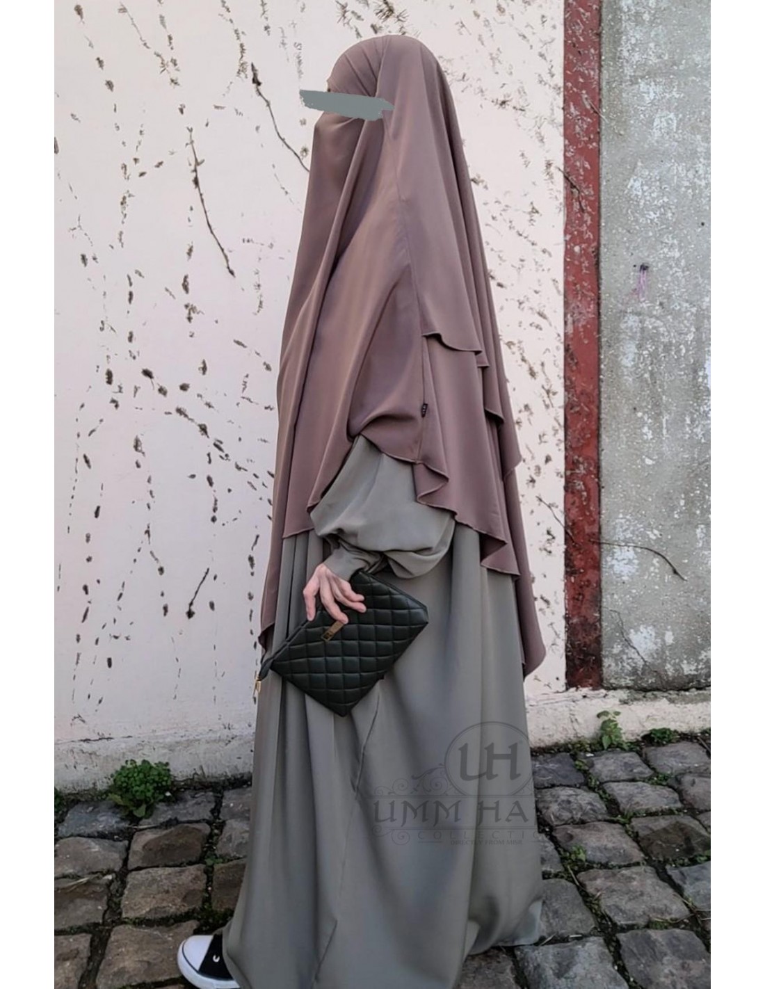 - Niqab-Option ( einfach den Khimar über das Gesicht ziehen und die beiden Bindebänder hinter dem Nacken verknoten)