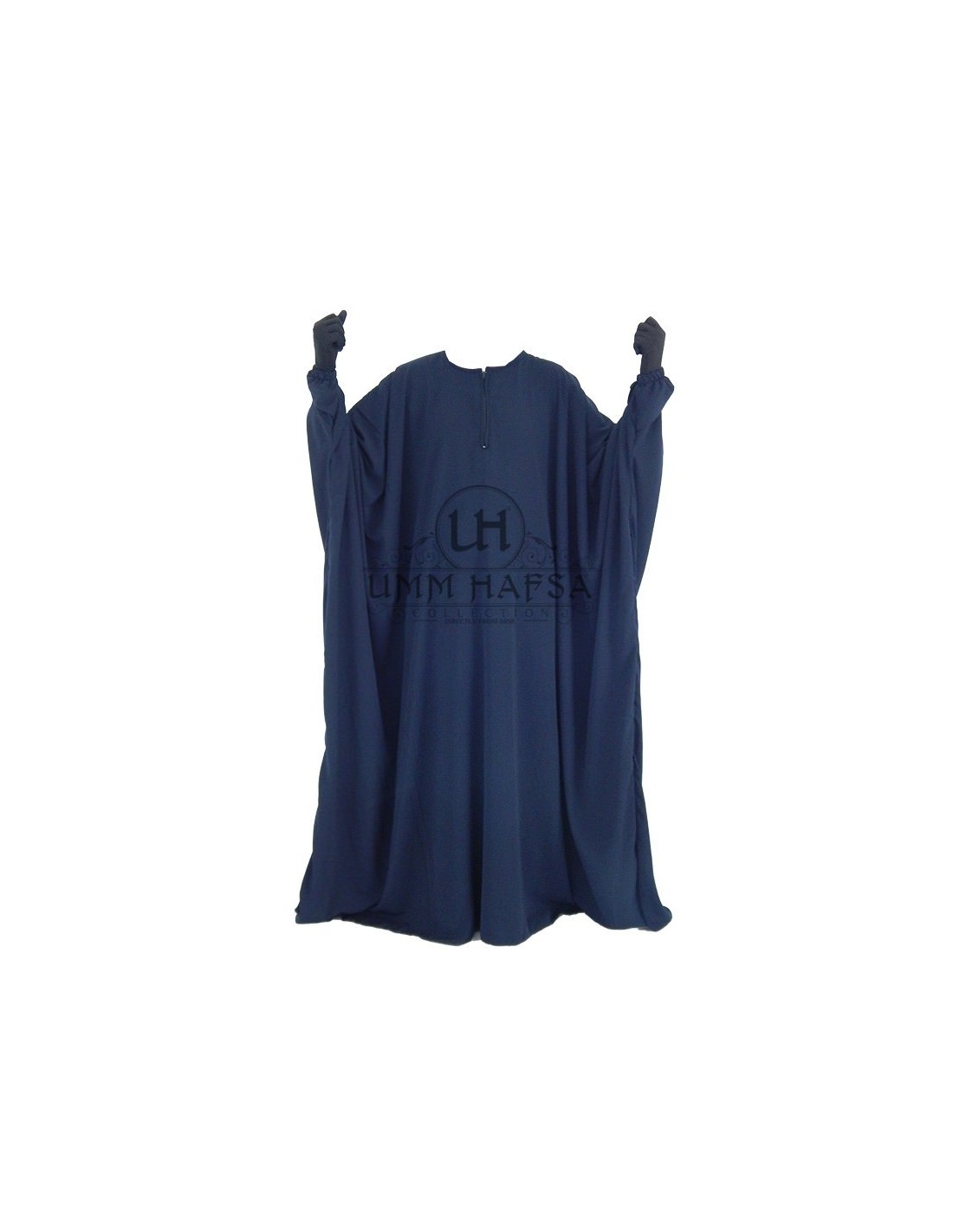 The Umm Hafsa abaya is a very pretty and particularly mastour model: a butterfly cut, a width of 1m85, tightened sleeves and a rounded collar with a fastening that allows mothers to breastfeed in complete modesty.