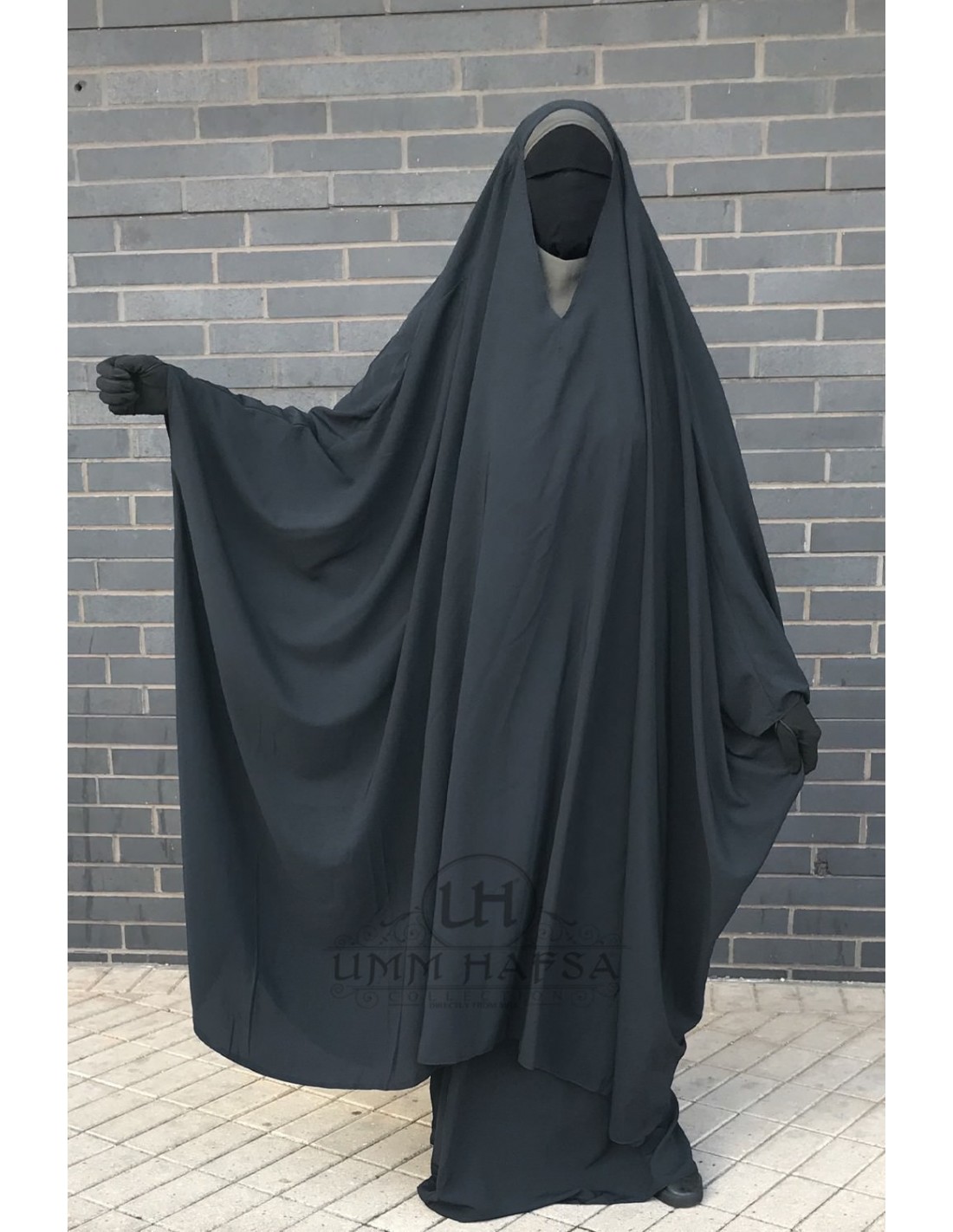 This Umm Hafsa jilbab is opaque and flowing, Sewn in Egyptian Whool pech fabric.