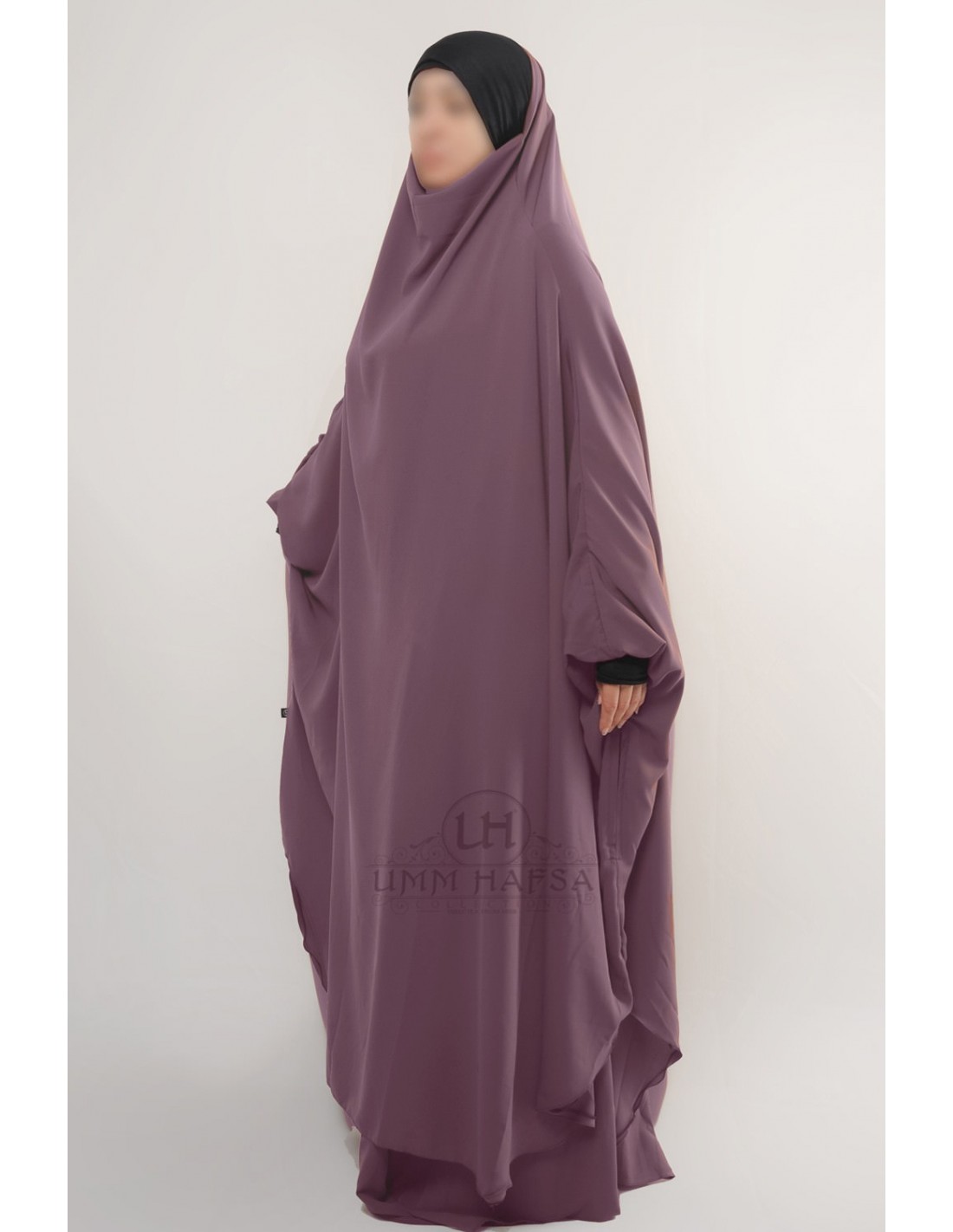 Hafsa Vieux Rose 2-piece jilbeb featuring a butterfly-cut cape with zippered pockets on each side for access to the skirt's kangaroo pocket or your handbag, the jilbab's headband and handles are made of lycra 100% cotton soft fabric is pleasant that allows you to be more comfortable."