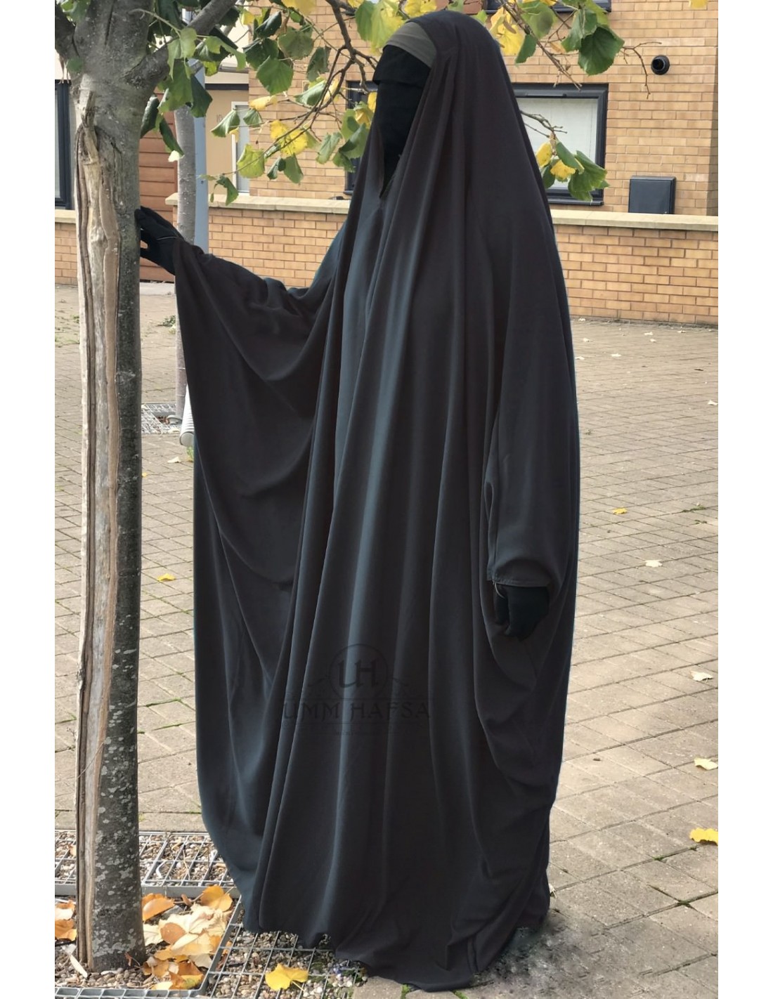 This Umm Hafsa jilbab is opaque and flowing, Sewn in Egyptian Whool pech fabric.