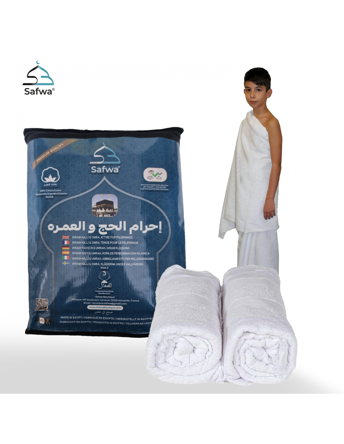 Ofrezca a su hijo la oportunidad de vivir los ritos del Hajj y la Umrah con un ihram diseñado especialmente para él: cómodo, conforme y listo para acompañarlo en esta etapa única de su vida espiritual.