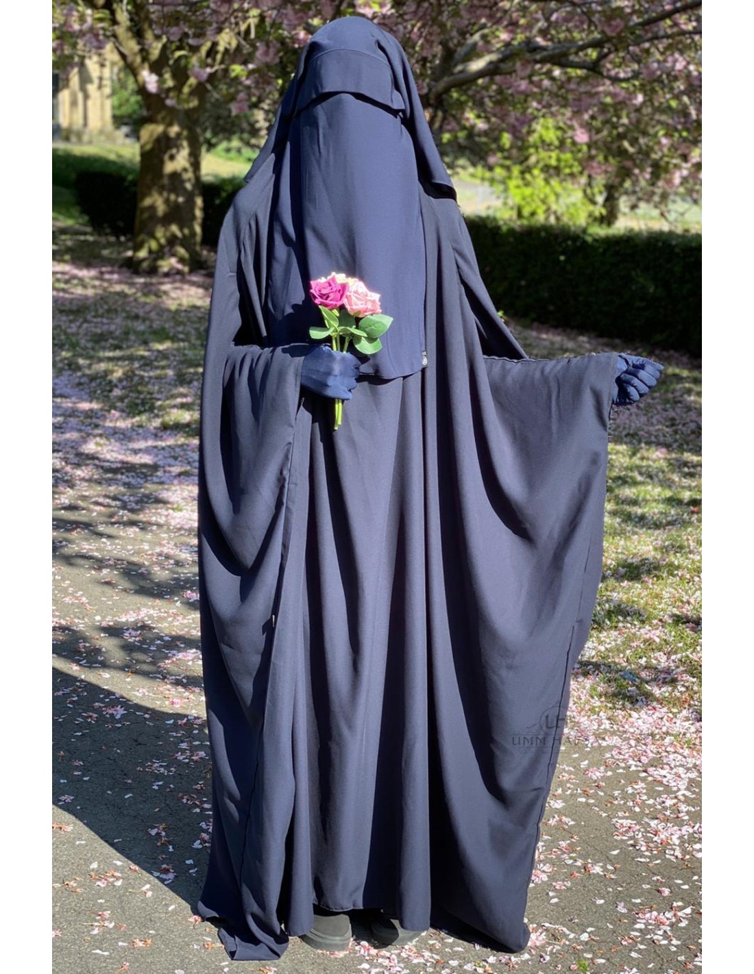 Cosido en el tejido Whool Egyptian pech. Este jilbab Umm Hafsa es opaco y fluido.