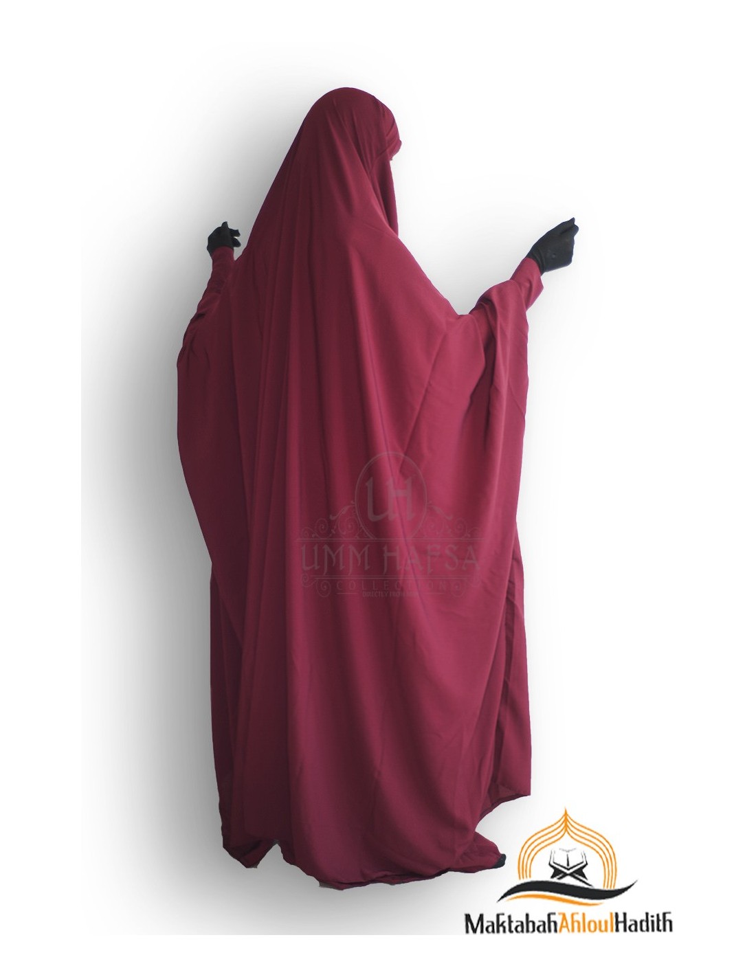 Così presentiamo il nuovo set Umm Hafsa Jilbab con zip. È composto da 2 pezzi: una mantella lunga e ampia in stile jilbab saudita + una gonna.