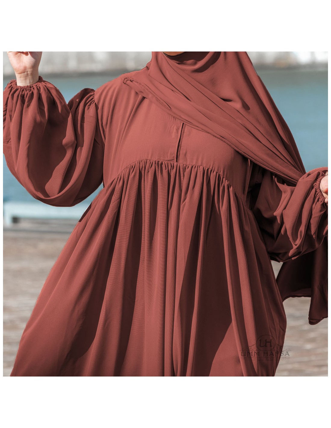 Abaya met ballonmouwen Umm Hafsa - Roestbruin