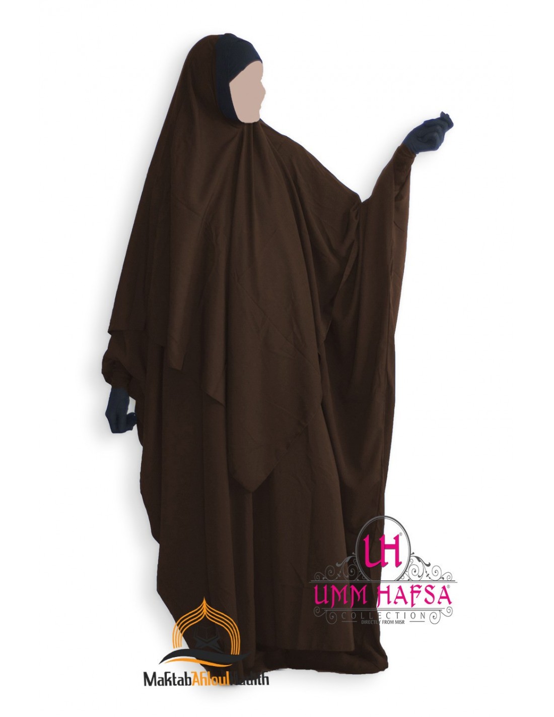 Conjunto Abaya + Khimar Lycra Umm Hafsa - MARROM
