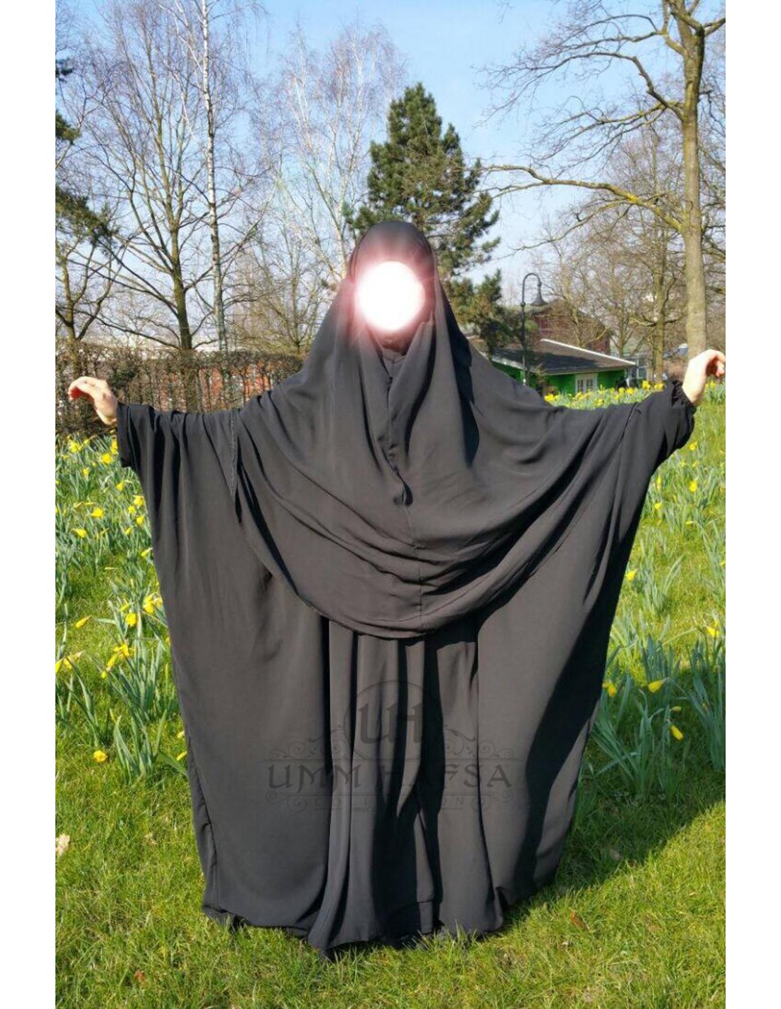Conjunto de abaiá/hijab com capa Umm Hafsa - Preto